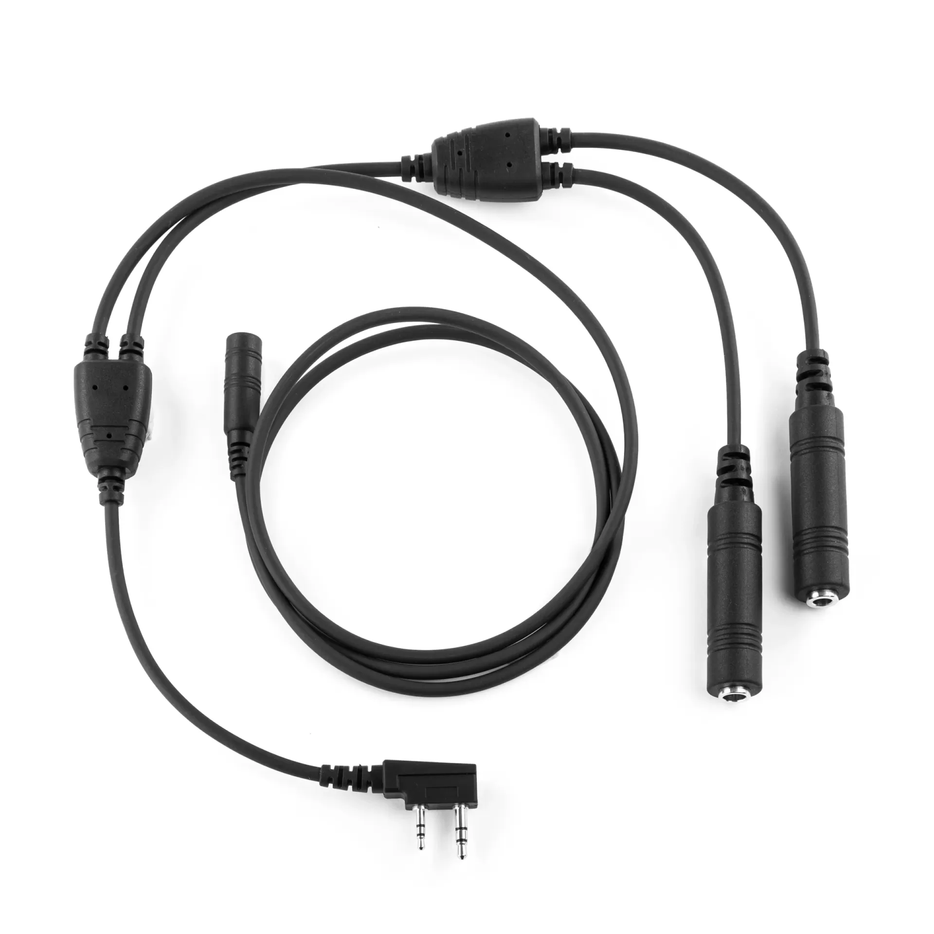 Cabo adaptador para capacetes de aviação com soquetes tipo PJ055 fêmeas, compatível com walkies airband, como o Dynascan AB-650, com conexão micro-fone de ouvido tipo "K" e conexão ao botão externo PTT via conector fêmea.