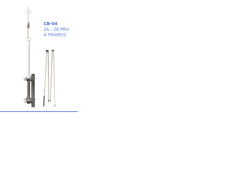 • Antena Base CB 27Mhz AM FM SSB FIBRA TAGRA CB-04 - Com 4 Tramos