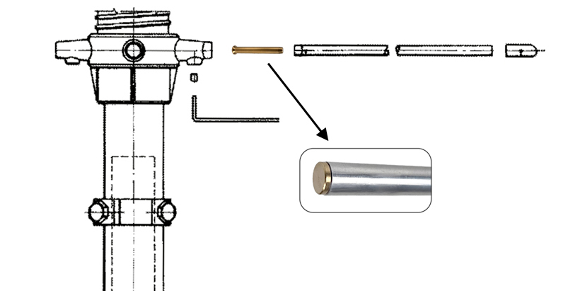 Bucha de latão maciço. Reforça as antenas radiais da base. Compatíveis com 827, Blizzard, New Tornado e Monsson. A bucha é inserida completamente dentro do radial, para reforçar o ponto de ancoragem, isso reduz ou previne sua deformação devido à fadiga excessiva em situações de vento muito forte.