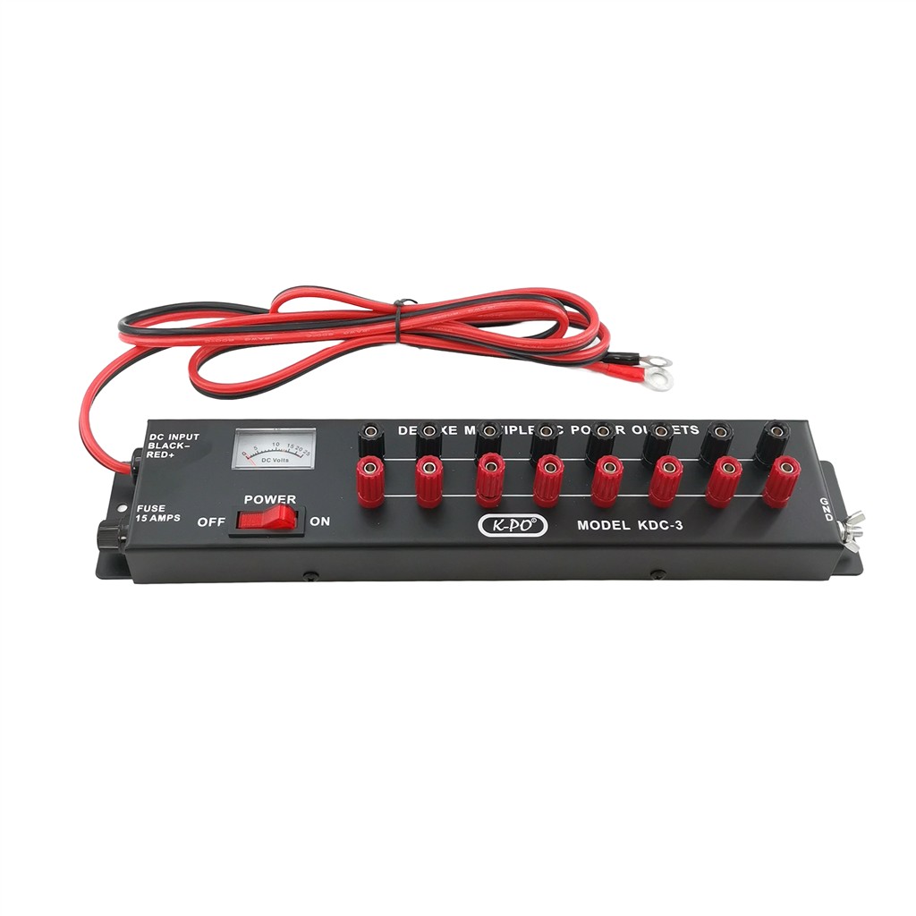 Régua de alimentação CC com 8 tomadas com medidor de tensão